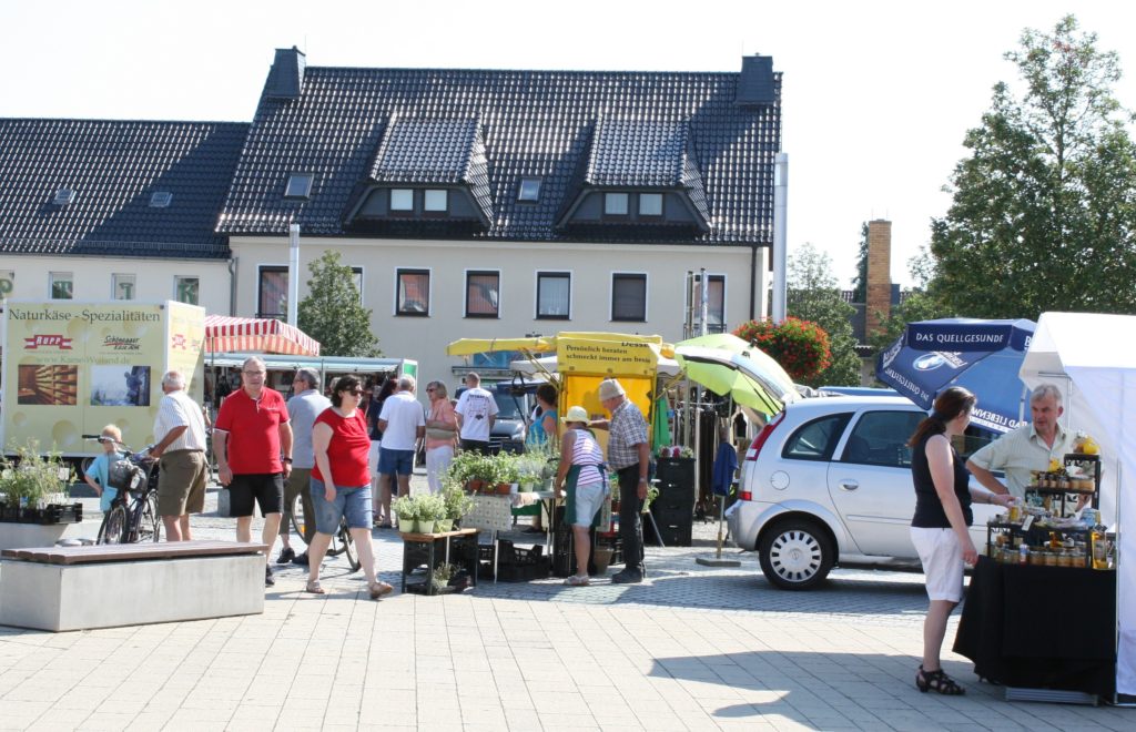 Nicht im übertragenen Sinn sondern buchstäblich war der Marktplatz in Elsterwerda am 08. August 2020 ein heißes Pflaster. Am heißesten Tag des Jahres fanden sich insgesamt 13 Produzenten, Händler und gastronomische Anbieter auf dem Marktplatz in Elsterwerda ein und boten ein vielfältiges Angebot für Einheimische und Besucher des 1. Heimatmarktes in Elsterwerda. Von regionalem Obst, Blumen und Pflanzen, Heil- und Küchenkräutern über Naturkäse-Spezialitäten, Räucherfisch, Produkten rund um die Biene bis hin zu Haushalt- und Korbwaren sowie verschiedensten Schuhwaren reichte das Spektrum der feilgebotenen Waren.
