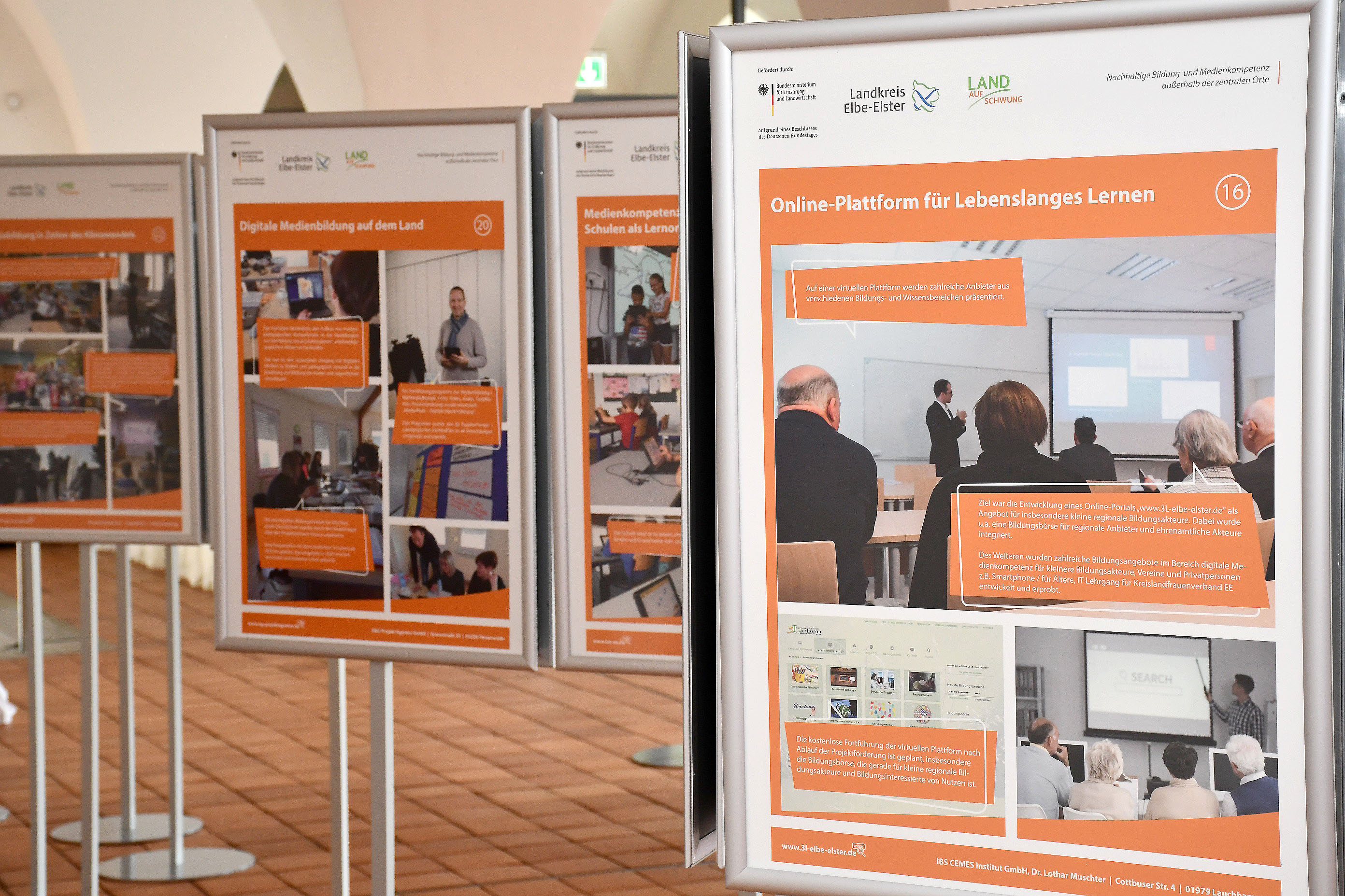 Der Landkreis Elbe-Elster war eine von bundesweit 13 Regionen im Modellvorhaben „Land(auf)Schwung“. Zunächst mit nur vier Projekten gestartet, konnten im Laufe der Förderung zwischen November 2015 und Dezember 2019 insgesamt 48 Projekte von 28 Unternehmen, Vereinen und Kommunen erfolgreich umgesetzt werden. Eine Wanderausstellung mit dem Titel „Fünf Jahre Modellförderung Land(auf)Schwung“ zeigt derzeit die erfolgreichen Ergebnisse der Projektarbeit in der Stadtbibliothek Elsterwerda.
