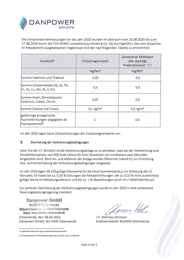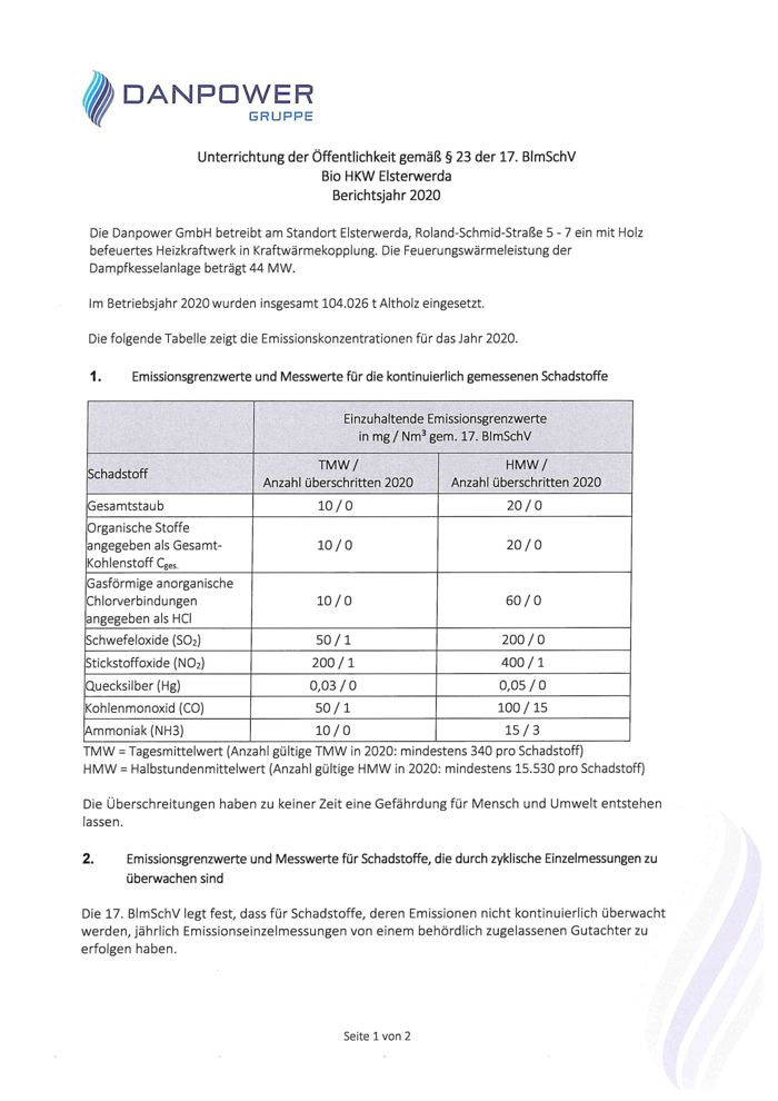 • Danpower Jahresbericht 2020 zum Bio HKW Elsterwerda