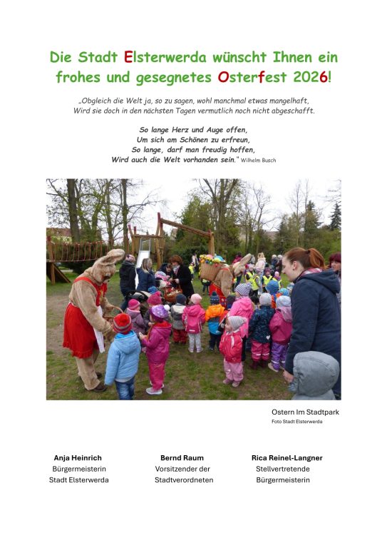 • Die Stadt Elsterwerda wünscht Ihnen ein frohes und gesegnetes Osterfest 2026!