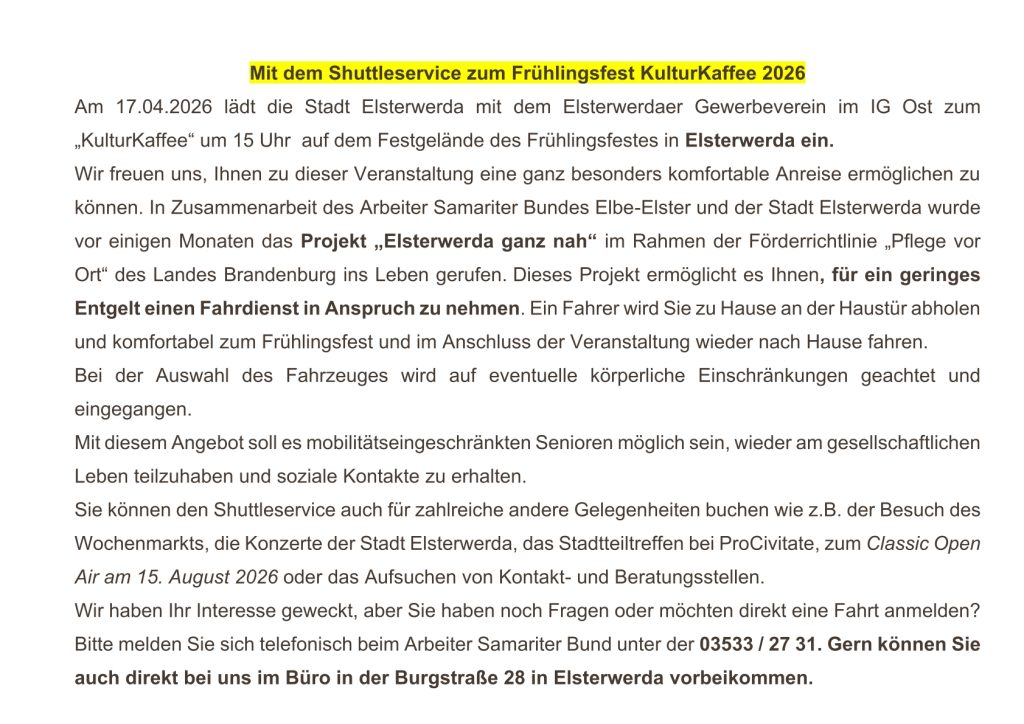 • Programm des 27. Frühlingsfestes Elsterwerda