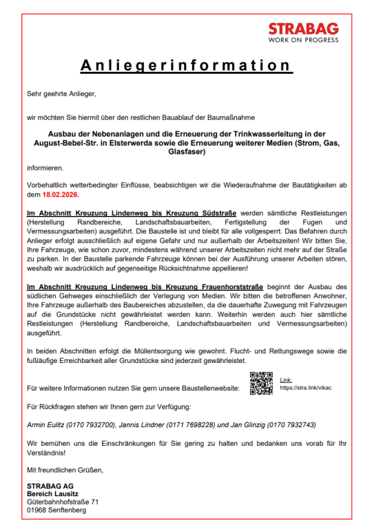 • Information für Anlieger der August-Bebel-Straße