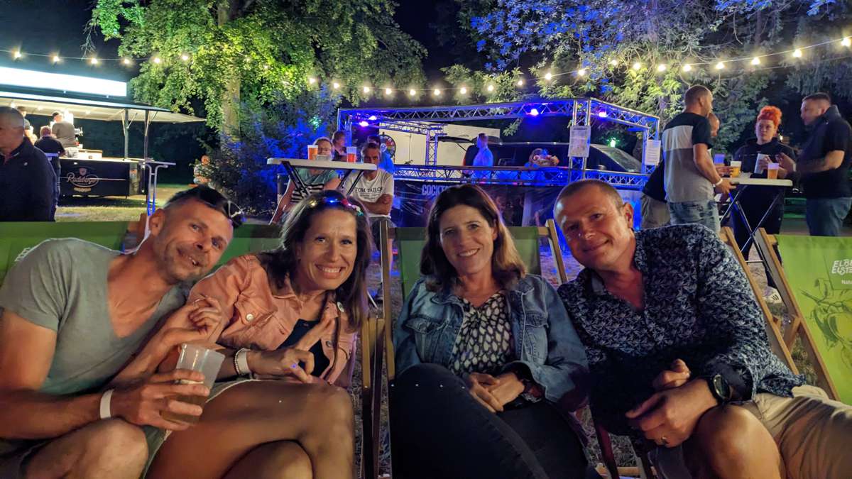 Matthias Lange, Cindy Vogel, Adriana Richter und Michael Lucko lauschten entspannt den Bands in der Samstagssommernacht. Foto: Christiane Müller, Stadt Elsterwerda